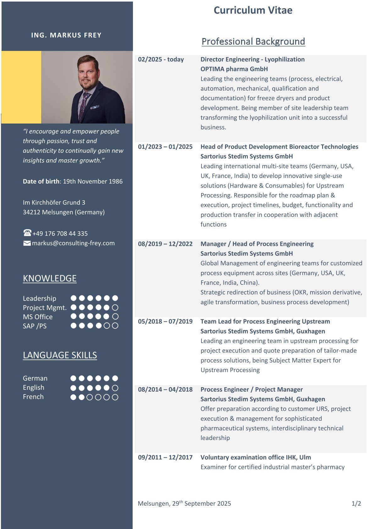 Since 2014 in various management positions (project management, team and department management, global project and leadership responsibility)