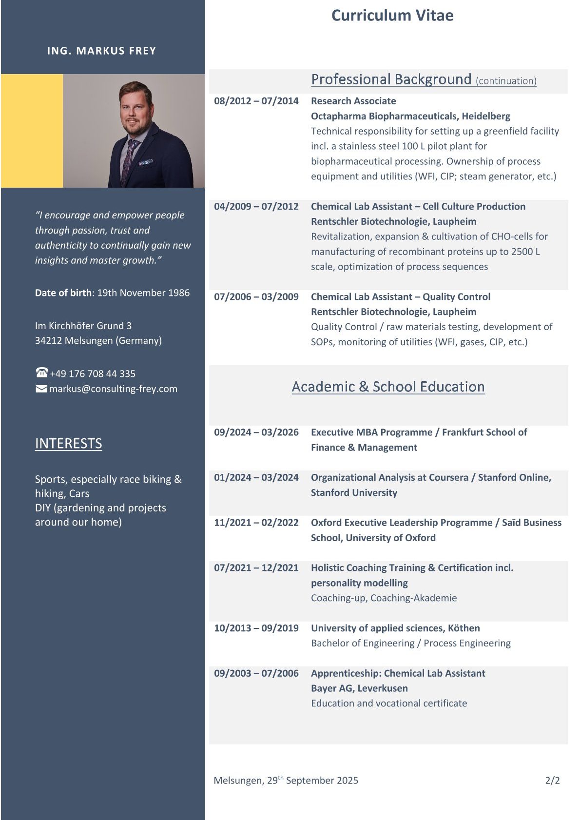 Since 2024 Executive MBA Candidate at the Frankfurt School of Finance & Management